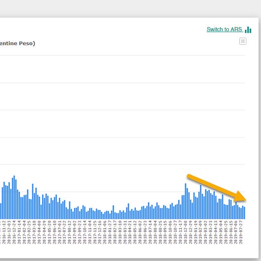 ここが話の妙なのだ。この記事を読んでいる人のほとんどは、私が「アルゼンチンの国民がビットコインを買うぞ!!!」と大きく主張すると思うだろう。しかし、それは必ずしも正しくない。実際には私は、国民の大多数は資産の価値を下げないように保つ目的で、ビットコインを購入することはないだろうと考えている。代わりに、国民の大多数は「最も有名で、よく理解されている資金の逃避先」 - つまり、USドル - を求めるだろう。